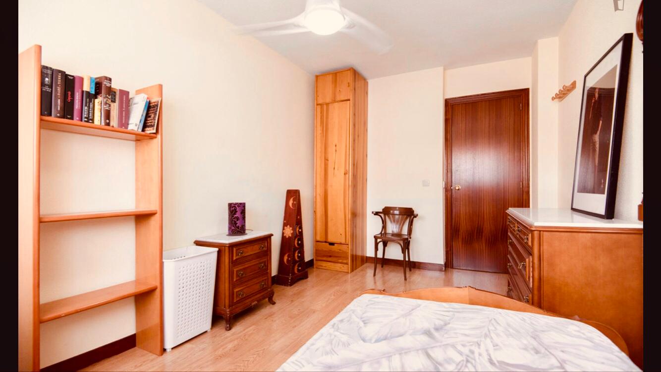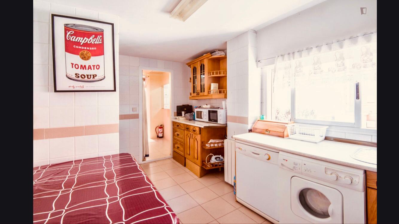 El apartamento de 125m2 está ubicado en una residencia privada en el segundo piso con ascensor, y consta de 5 habitaciones individuales grandes. Las habitaciones están completamente amuebladas para que pueda tener una estancia agradable y tranquila de un mínimo de 4 a 6 meses: camas, armarios grandes, escritorios, televisión y wifi incluidos. Todas las puertas de las habitaciones tienen cerraduras. Es un apartamento amplio y hermoso con 2 baños y cocina totalmente equipada: ventilador con control remoto, lavadora, lavavajillas, nevera, horno y vitrocerámica.